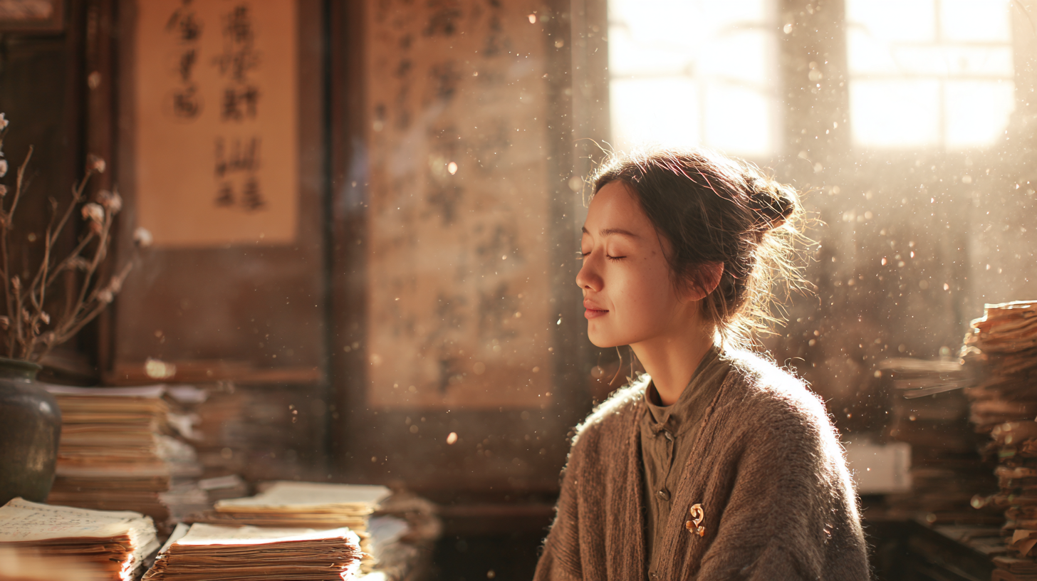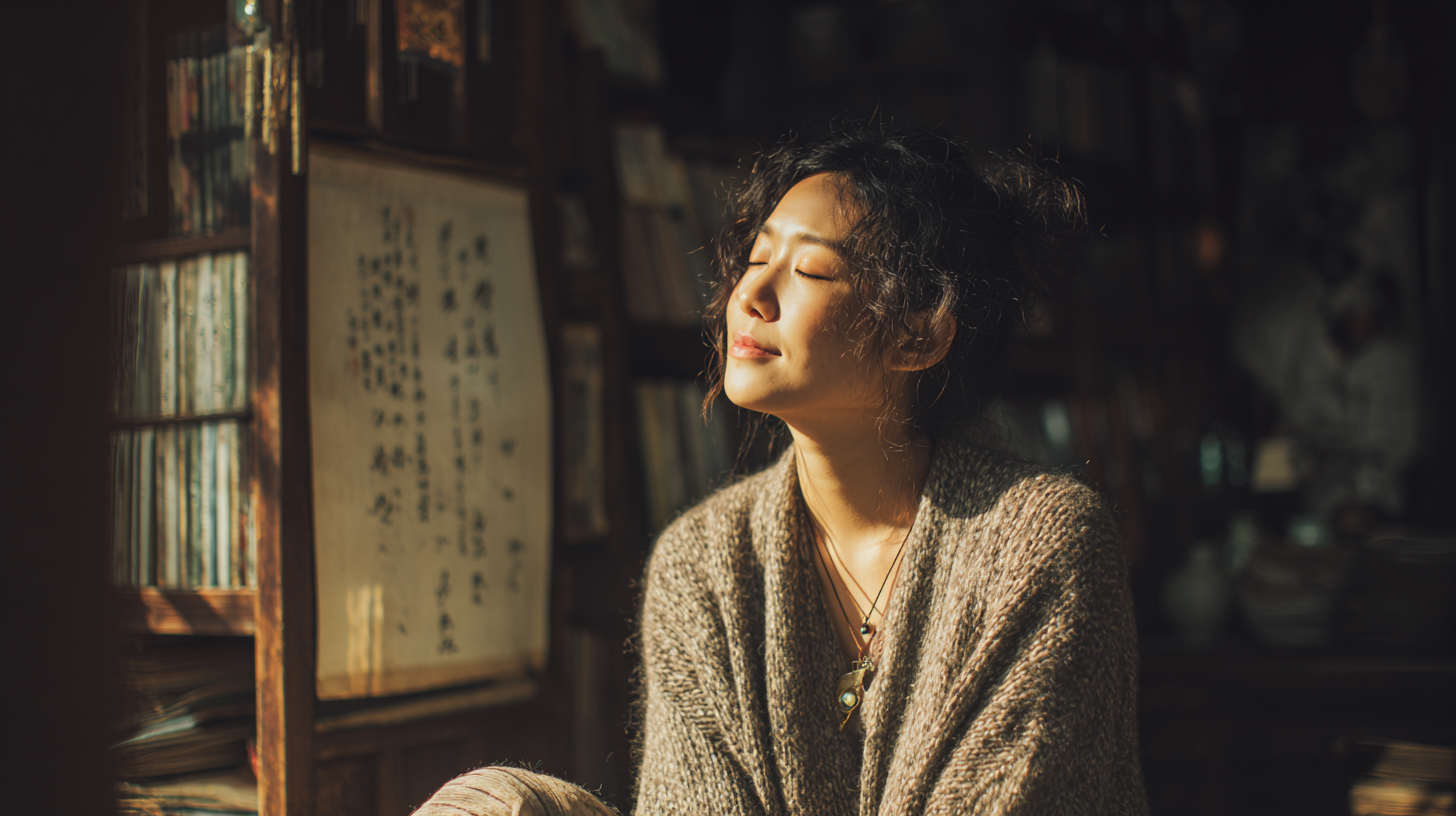 "Thus", "I", "retreated", "【inward】". "In", "my", "【'heart's'】" "deepest place", "I sought", "a", "quiet" "【'tea room'】", "And", "settled", "myself", "down". "I", "began", "to learn", "to", "appreciate", "Those", "【'corners'】" "not" "【'favored'】" "by the" "【'sunlight'】"— "That", "【'moss'】" "in the wall's corner", "that", "【'light-spot'】" "slowly" "【'moving'】" "on the window lattice", "That", "【'leaf'】" "slowly" "【'unfurling'】" "in the tea". "In", "this", "total" "【'stillness'】", "a" "【'flower'】", "In", "my" "【'heart's'】" "tea room", "arrived", "unexpectedly".