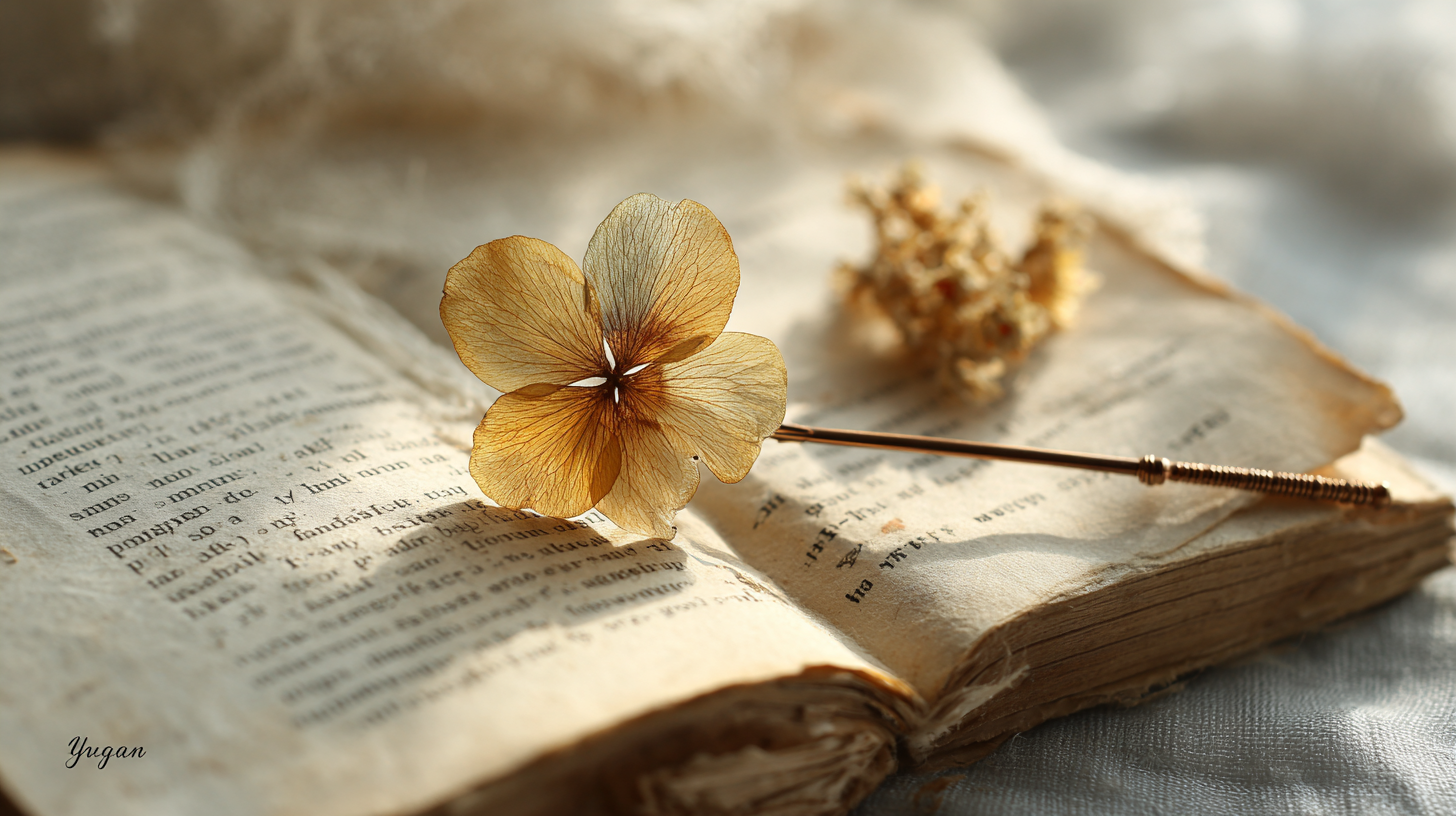 This Vessel, is a "Lingering Scent of Spring Form Hairpin". The main body, is composed of, several "Memory Flowers" hand-formed from "Pale Cream-Yellow" and "Misty Purple" 【Liuli/Glass Petals】. Its "Petals" are translucent, and, light, presenting, a "Dream-like Texture", after shedding "Weight". The flower hearts, are adorned with "Freshwater Pearls", and, "Blue Crystal". A "Tassel" composed of "Pearls" and "Golden Flower Petals", hangs down from the "Hairpin Head", symbolizing, that, one, eternal "Lingering Scent".